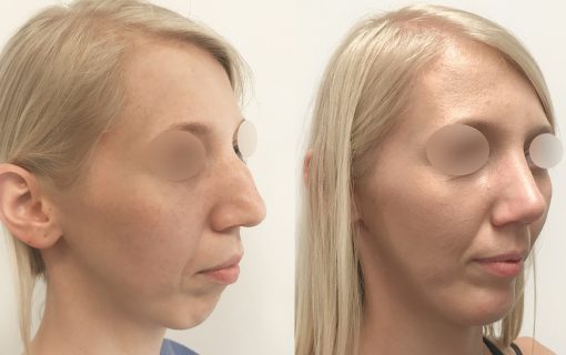 Zabieg korekcji nosa i korekcji bródki często jest wykonywany w jednym czasie u pacjentów z tzw. ptasim profilem twarzy. W przypadku takiego profilu twarzy noś ma znaczną przednią projekcję, często jest garbaty a bródka jest mała z brakiem przedniej projekcji. Wadą tym towarzyszą często wady zgryzu, które powinny być leczone ortodontycznie. Jednoczasowa korekcja nosa i bródki w dużym stopniu zmienia wygląd estetyczny twarzy. Szczegółowy opis zabiegów przedstawiono oddzielnie dla korekcji nosa i bródki.